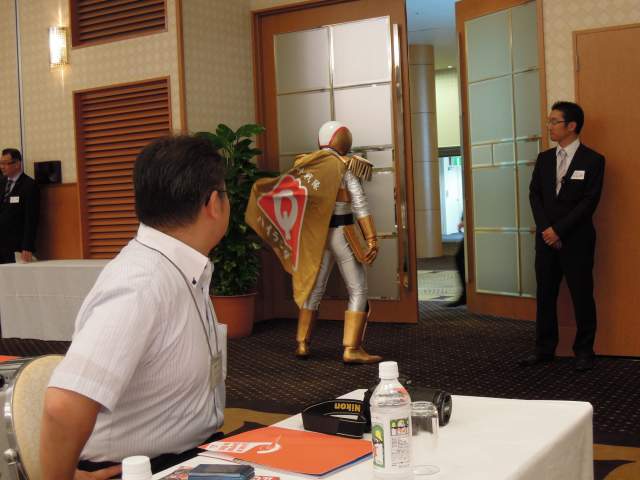 コーヒー貰って、不要な荷物をクルマに置いて、会場(バンケットホール富士)に入る。