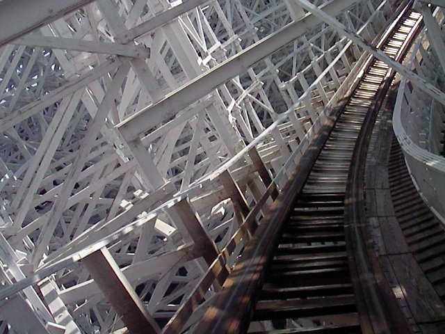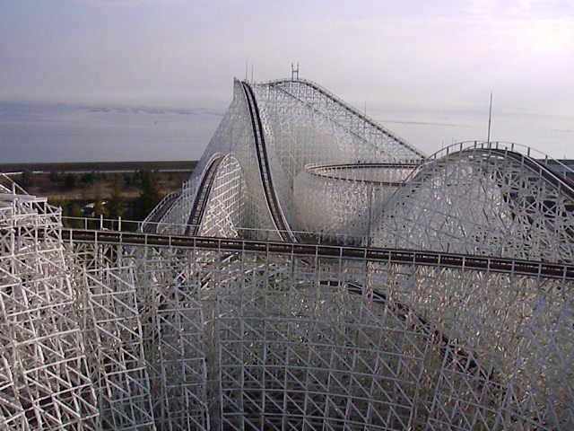 ホワイトサイクロンは国内最大の木製コースターであり、その激しい挙動ゆえに体力を消耗します。